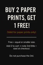 All prints will be packaged in an acid-free, protective sleeve in a large stay flat cardboard envelope or a postal tube.